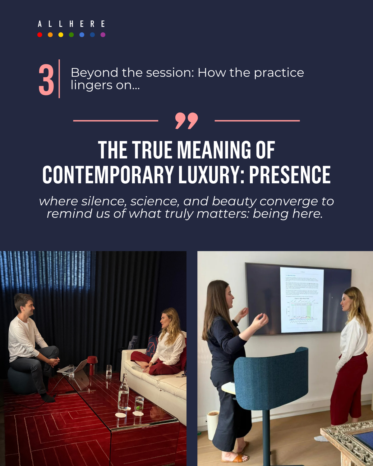 When someone who has explored wellness across the globe recognizes what we’re building —an ecosystem where silence, science, and beauty converge— it highlights our whole raison d’être: to Inspire society to Meditate with Science and Technology.