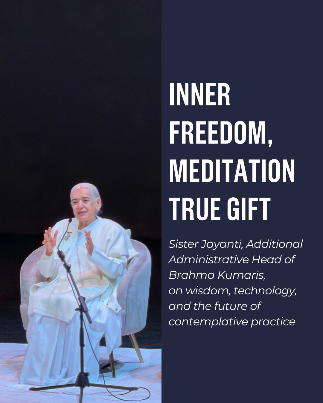 Beautifully hosted by Brahma Kumaris France, the evening, “Rencontre avec Sister Jayanti – Liberté intérieure, le cadeau de la méditation,” brought together a large audience of meditation practitioners to honorcontemplative practice and reflect on the theme of inner freedom.